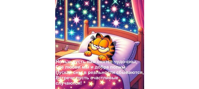 Ночью пусть нам снятся чудо-сны, где любви мы и добра полны. Пускай сны в реальности сбываются, встречи пусть счастливые случаются!
