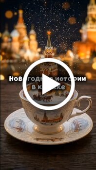 Видеооткрытка "Новогодние истории в кружке. Москва - Спасская башня Кремля. Санкт-Петербург - Зимний дворец. Велик"