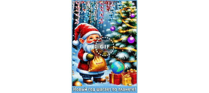 Анимированная открытка "Новый год шагает по планете!"