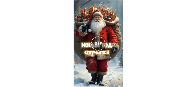 Анимированная открытка "Новый год стучится, открывайте двери! Пусть же в нем случится все, во что мы верим!"