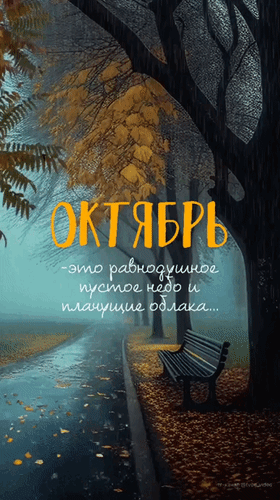 Анимированная открытка "Октябрь - это равнодушное пустое небо и плачущие облака..."