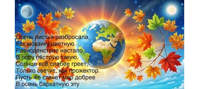 Открытка "Осень листья разбросала, как мозаику цветную. Равноденствие настало в пору пёструю такую. "