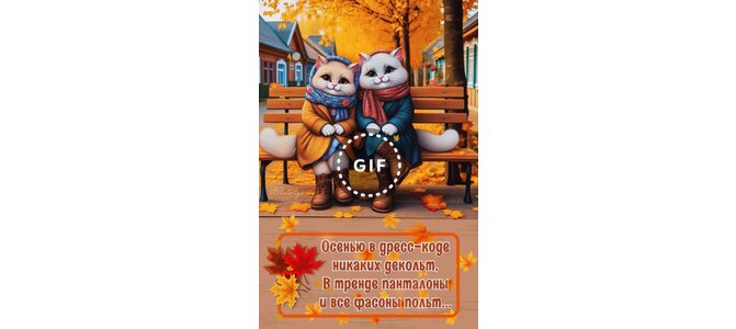 Анимированная открытка "Осенью в дресс-коде никаких декольт, в тренде панталоны и все фасоны польт..."