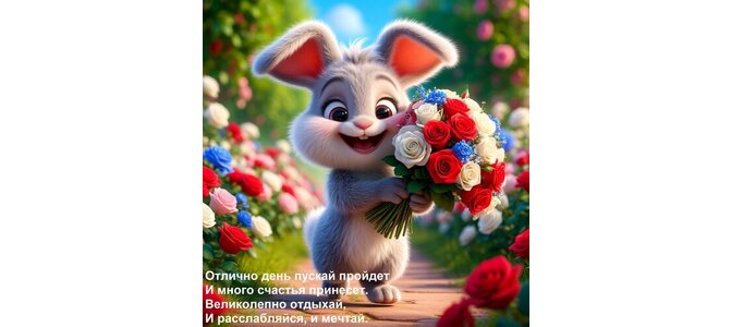 Теги:отлично день пускай пройдет и много счастья принесет великолепно отдыхай, и расслабляйся, и мечтай