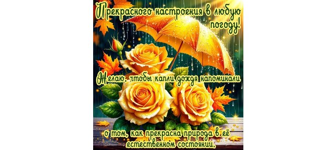 Теги:отличного настроения, дождь, осень, цветы, розы, желтые розы, отличного настроения в любую погоду, про погоду