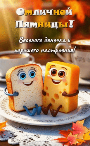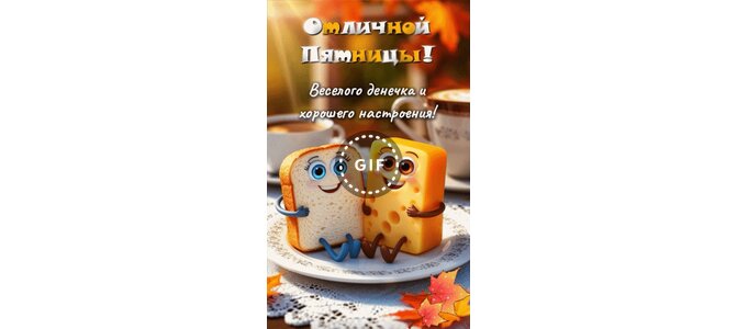 Анимированная открытка "Отличной пятницы! Веселого денечка и хорошего настроения!"