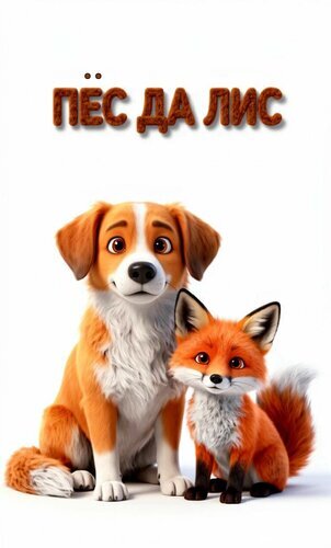 Постер к мультфильму «Пёс да Лис» с изображением двух главных героев: милого рыжего пса и очаровательной лисицы. На картинке представлены детализированные 3D-персонажи с выразительными глазами на чистом белом фоне. В верхней части расположена крупная надпись названием мультфильма, выполненная в текстурном стиле. Изображение идеально подходит для использования в статьях о семейной анимации, обзорах мультфильмов и подборках детского контента.
