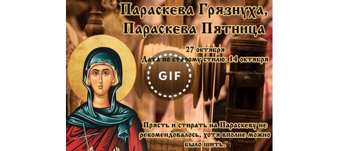 Параскева Грязнуха, Параскева Пятница. 27 октября. Дата по старому стилю: 14 октября. Прясть и стирать на Параскеву не ρεκοмендовалось, хотя вполне можно было шить.