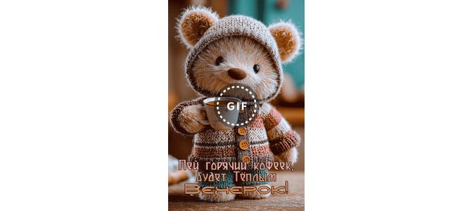 Анимированная открытка "Пей горячий кофеёк, будет тёплым вечерок!"