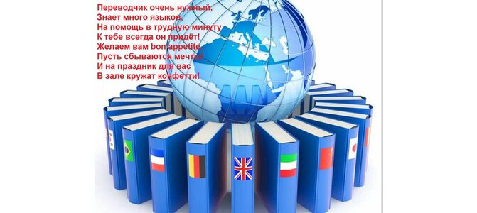Открытка "Переводчик очень нужный, знает много языков, на помощь в трудную минуту к тебе всегда он придёт! "