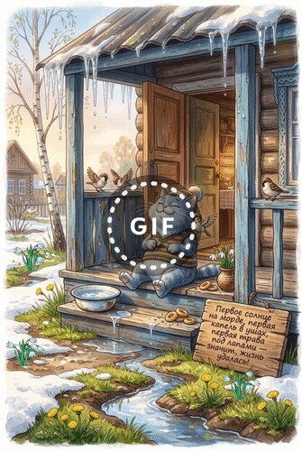Анимированная открытка "Первое солнце на морде, первая капель в ушах, первая трава под лапами - значит, жизнь удалась!"