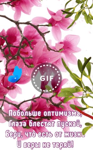 Анимированная открытка "Побольше оптимизма, глаза блестят пускай, бери, что есть от жизни и веры не теряй!"