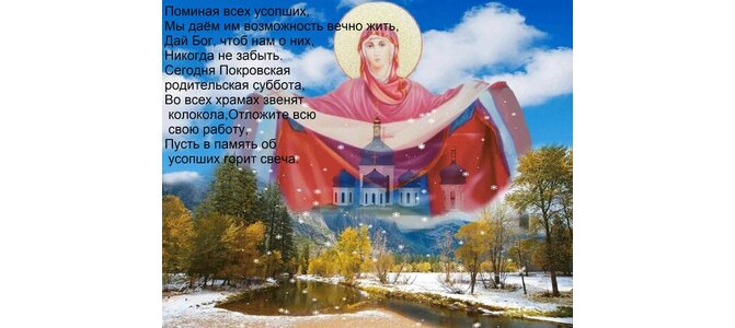 Теги:поминая всех усопших, мы даём им возможность вечно жить, дай бог, чтоб нам о них, никогда не забыть сегодня покровская родительская суббота, во всех храмах звенят колокола, отложите всю свою работу, пусть в память об усопших горит свеча