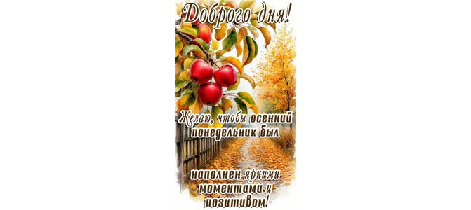 Доброго дня! Желаю, чтобы осенний понедельник был наполнен яркими моментами и позитивом!