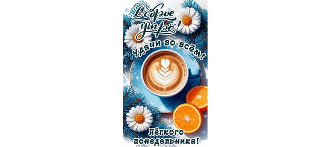 Теги:понедельник, дни недели, доброе утро, апельсины, цветы, зима, снег, ель, легкого понедельника, ромашки, удачной недлеи, красивая картинка
