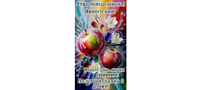 Теги:понедельник, дни недели, яблоки, цветы, утро, доброе утро, зима, снег, снежинки, красивая картинка, добра, удачи, новых свершений