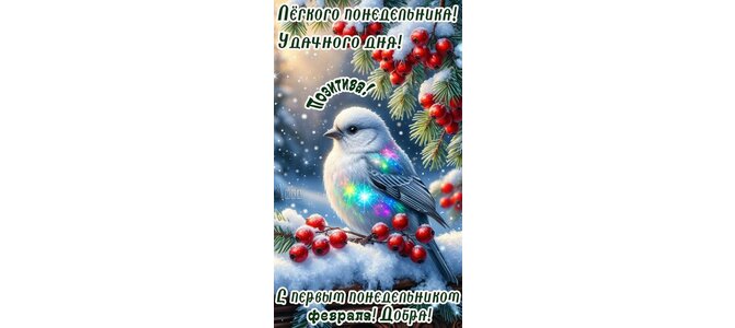 Теги:понедельник, дни недели, птичка, снег, зима, позитив, ягоды, красивая картинка, лес, добра, удачи, легкого дня, добрый день