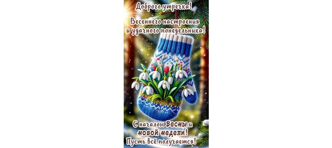 Теги:понедельник, дни недели, утро, новая неделя, пусть все получается, варежка, цветы, красивая картинка, удачного понедельника, весна, зима