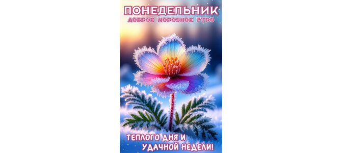 Открытка "ПОНЕДЕЛЬНИК. ДОБРОЕ МОРОЗНОЕ УТРО. ТЕПЛОГО ДНЯ И УДАЧНОЙ НЕДЕЛИ!"