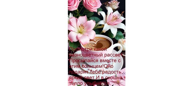 Теги:посмотри какой разноцветный рассвет, просыпайся, вместе, этим, солнцем, оно, подарит, тебе, радость, яркий свет и в окошко тепло улыбнётся