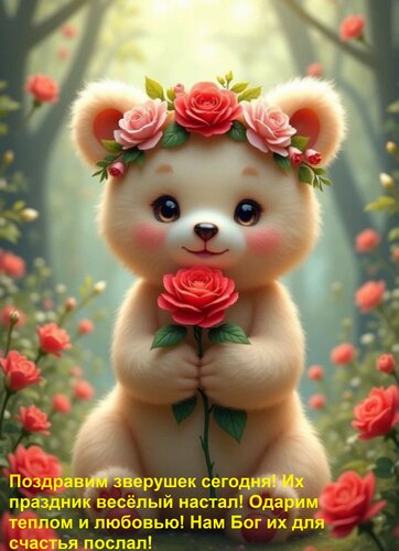 Открытка "Поздравим зверушек сегодня их праздник весёлый настал! Одарим теплом и любовью!"