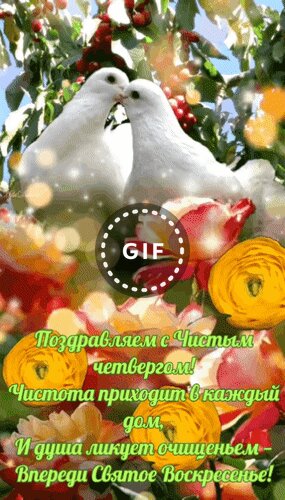 Анимированная открытка "Поздравляем с Чистым Четвергом! Чистота приходит в каждый дом, и душа ликует очищеньем - впереди"
