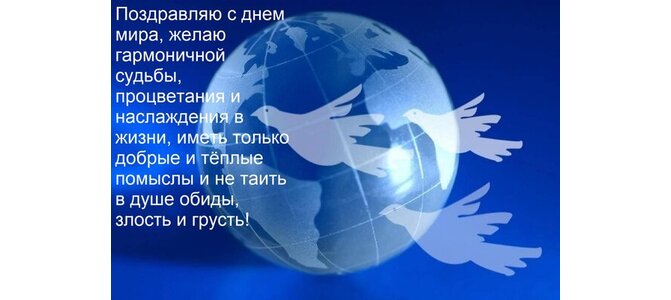 Теги:поздравляю с днем мира, желаю гармоничной судьбы, процветания и наслаждения в жизни, иметь, только, добрые, тёплые, помыслы, таить, душе, обиды, злость и грусть