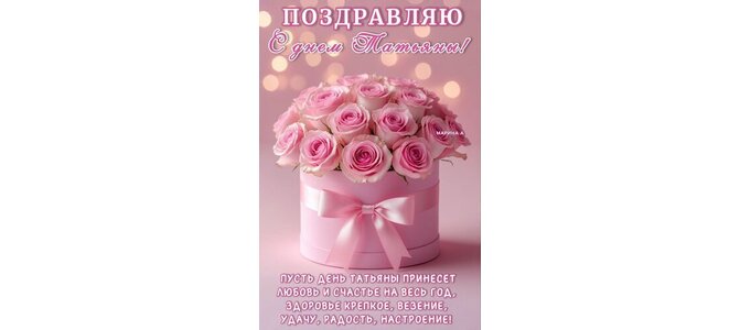 Открытка "ПОЗДРАВЛЯЮ С ДНЕМ ТАТЬЯНЫ! ПУСТЬ ДЕНЬ ТАТЬЯНЫ ПРИНЕСЕТ ЛЮБОВЬ И СЧАСТЬЕ НА ВЕСТЬ ГОД, ЗДОРОВЬЕ КРЕПК"