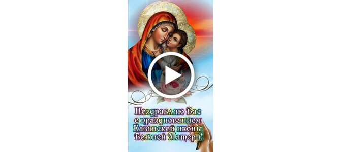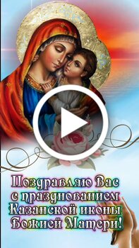 Видеооткрытка "Поздравляю Вас с празднованием Казанской иконы Божией Матери! Желаю крепкой веры, духа единения..."