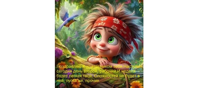 Теги:поздравляю я со вторником тебя, наступил сегодня день второй, рабочий, и неделя будет легкая твоя, сложностей не будет в ней, пуска же, прочих
