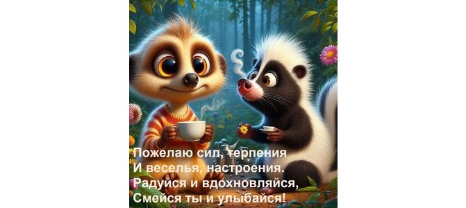 Теги:пожелаю сил, терпения и веселья, настроения радуйся и вдохновляйся, смейся ты и улыбайся
