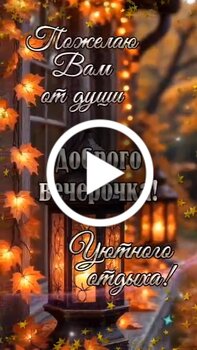 Видеооткрытка "Пожелаю вам от души доброго вечерочка! Уютного отдыха! Желаю вам насладиться тихим и спокойным вечером!"