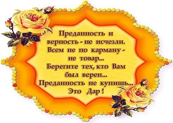 Преданность и верность-не исчезли. Всем не по карману-не товар... Берегите тез, кто Вам был верен... Преданность не купишь... Это Дар!