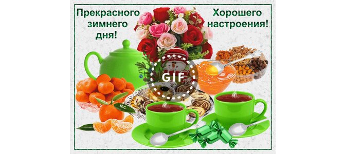 Анимированная открытка "Прекрасного зимнего дня! Хорошего настроения!"