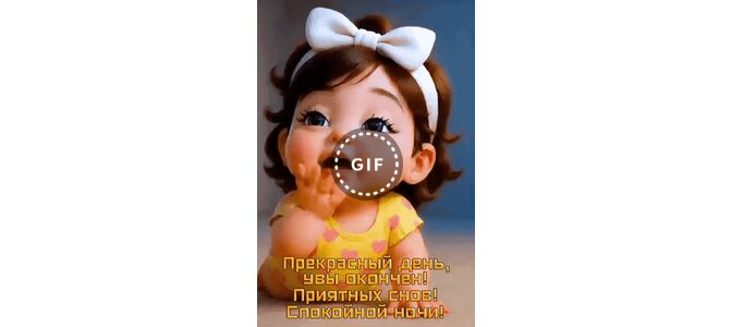 Анимированная открытка "Прекрасный день, увы, окончен! Приятных снов! Спокойной ночи!"