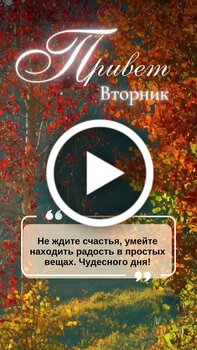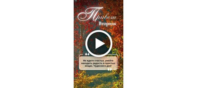 Видеооткрытка "Привет, вторник! Не ждите счастья, умейте находить радость в простых вещах. Чудесного дня!"