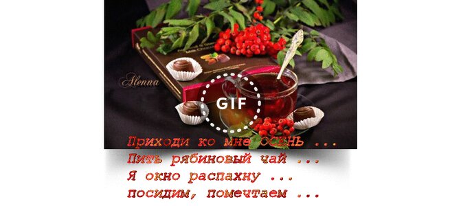 Анимированная открытка "Приходи ко мне осень пить рябиновый чай"