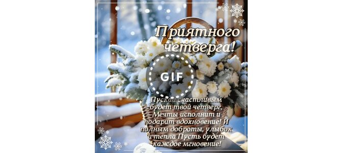 Анимированная открытка "Приятного четверга! Пускай счастливым будет твой четверг, мечты исполнит и подарит вдохновение!"