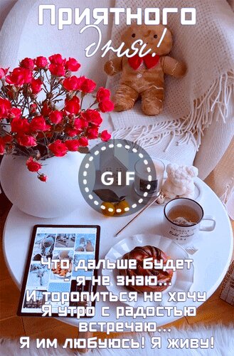 Анимированная открытка "Приятного дня! Что дальше будет - я не знаю... И торопиться не хочу. Я утро с радостью встречаю... Я"
