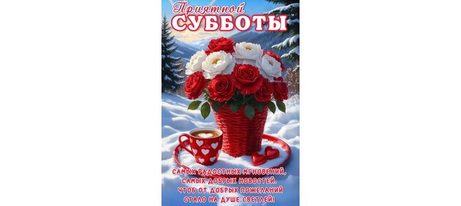Открытка "ПРИЯТНОЙ СУББОТЫ. САМЫХ РАДОСТНЫХ МГНОВЕНИЙ, САМЫХ ДОБРЫХ НОВОСТЕЙ. ЧТОБ ОТ ДОБРЫХ ПОЖЕЛАНИЙ СТАЛО Н"