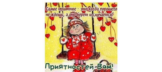 Самое приятное - это когда хорошего не ждешь, а оно берет и случается! Приятностей Вам!