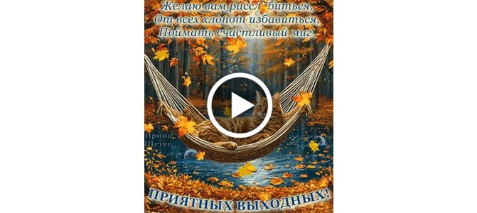 Желаю вам расслабиться, от всех хлопот избавиться, поймать счастливый миг. Приятных выходных!