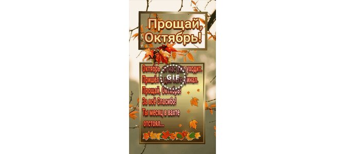 Прощай, Октябрь! Октябрь от нас уже уходит. Пришёл и для него финал. Прощай, Октябрь! За всё спасибо! Ты месяц в вахте отстоял...