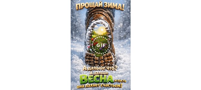 Открытка "Прощай, зима! А дальше что? А дальше Весна и пусть она пахнет счастьем!"