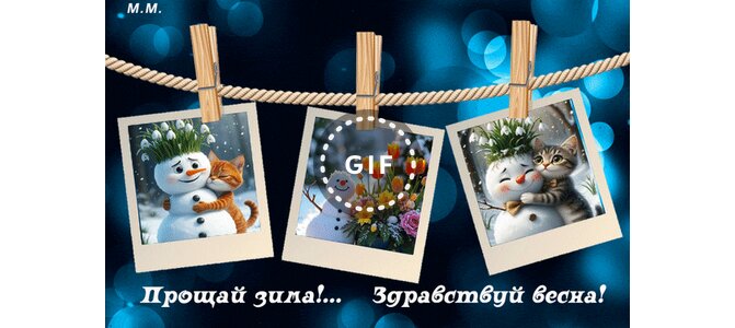 Теги:зима, весна, последний день зимы, открытка, гиф, анимация, максимчук м г