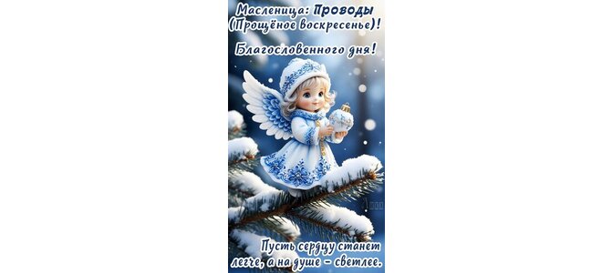 Теги:прощеное воскресенье, масленица проводы прощеное воскресенье, снег, зима, ангелок, красивая картинка, путь на душе будет светло, сердцу будет легче, благословенного дня