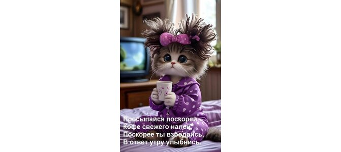 Теги:просыпайся поскорей, кофе свежего налей, поскорее ты взбодрись, в ответ утру улыбнись