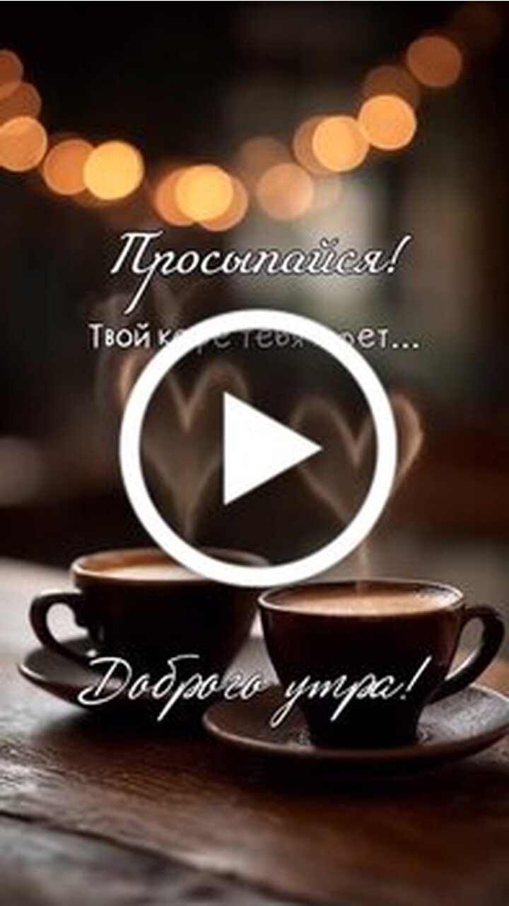 Видеооткрытка "Просыпайся! Твой кофе тебя ждёт...Доброго утра!"