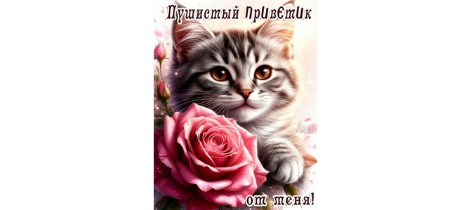 Теги:пушистый приветик от меня, приветик, котик, кошка, пушистик, цветы, розы, пожелания на каждый день, красивая картинка