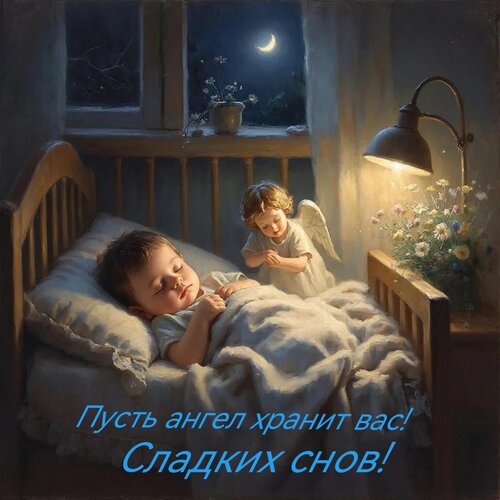 Открытка "Пусть ангел хранит вас! Сладких снов!"